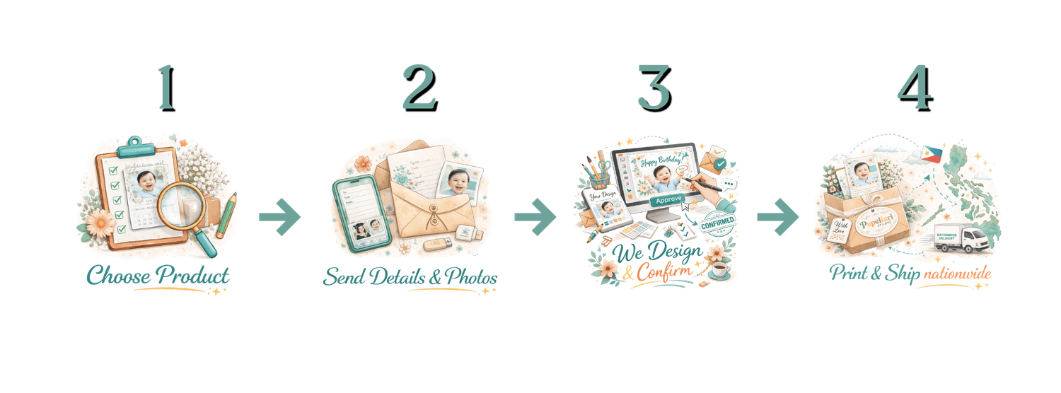 At Papeliari Studio, we believe every little celebration deserves thoughtful and beautifully crafted design. From personalized prints to custom layouts, we create pieces that feel meaningful, elegant, and made with heart. We take the time to ensure every detail is carefully designed and printed with quality you can trust.